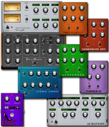 9 custom shop effects to deck out your virtual studio or your live rig! The included units are all highly tweakable and production friendly. Effects included are VC-93B compressor, Phased 'N Confuzed phaser, Brandenburg Gate, Filter Gnome, nExpander, Stereo Chorus, Flanger 2X, BitMistress bit crusher, and Auraverb reverb.