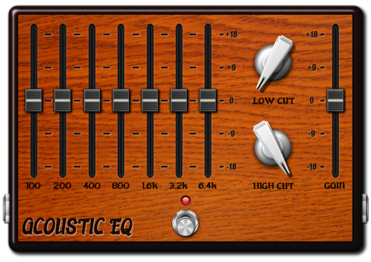 Acoustic EQ is a high quality graphic equalizer designed specially for the acoustic guitar and our acoustic simulators. Providing 18dB of cut or boost over 7 strategic frequency bands, Acoustic EQ also features low and high cut controls for taming boominess and shrill tones, respectively. It’s perfect for livening up a dull sounding acoustic, or sculpting your guitar into a tight mix.