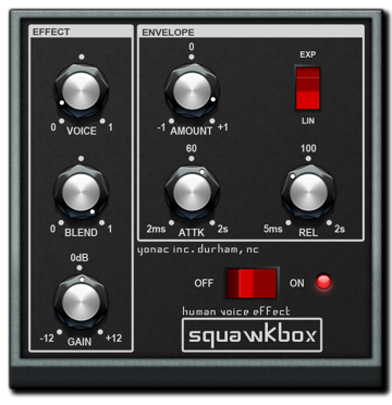 A highly original design, Squawk Box adds a human voice effect to your playing. Featuring our custom 'voice' filter, it gives you a wide range of control on the timbre and morphings of the effect. Squawk Box includes a fully configurable envelope follower so that you can easily control it using the dynamics of your playing, as well as an Exponential/Linear control switch to vary the envelope curve. A unique effect, you can use it alone, after a distortion box or anywhere else on your chain for distinct results.