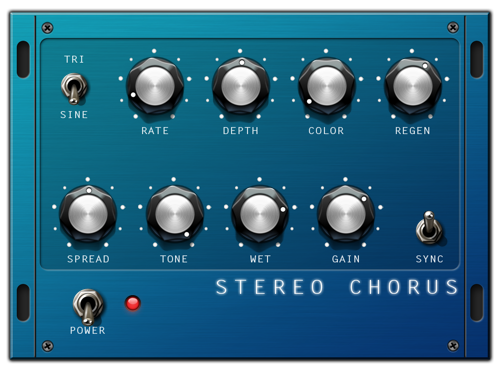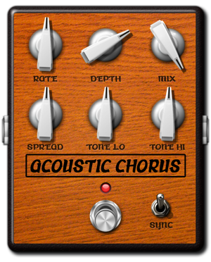 Acoustic Chorus creates thick, airy chorus effects that are designed specially to complement acoustic instruments. Acoustic Chorus is stereo, and features a Spread knob that lets you specify the stereo width of the chorus effect, creating a fuller and stronger sound the more it is turned up. Depth, Rate and Mix controls help you shape the chorus tone with precision. The Lo and Hi tone knobs let you alter the tonality of the chorus signal for even greater tonal variation.