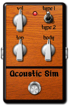 Acoustic Sim features state-of-the-art acoustic simulation that turns your electric guitar into an acoustic. Featuring two unique acoustic guitar types to choose from, Acoustic Sim also provides you with controls for the Top and Body characteristics of the simulation. The Top knob helps you vary the resonant tonality of the virtual acoustic, progressing from dark and round to bright and attack-y as you turn it up. The Body knob changes the low-end presence of the acoustic, giving you a bigger, tighter sound as it is turned up. Combined with our other new acoustic offerings such as the Acoustic Compressor, Acoustic Chorus and Acoustic Reverb, Acoustic Sim helps you obtain an enormous variety of acoustic guitar tones without switching out your electric.