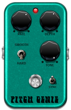 Patterned after analog pitch shifting circuits, Pitch Genie features adjustable modulation rate and depth as well as tempo syncing capability. Best yet, it allows you to switch between 'smooth' and 'hard' modulation shapes: in smooth mode, the vibrato is natural sounding with a continuous up/down bend; in hard mode, it alternates between pitches abruptly to give you that 'ambulance siren' effect - perfect for emulating alternating octaves sort of runs.