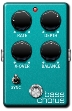 Designed specifically for the bass guitar, Bass Chorus features a deep, shimmering chorus effect that complements bass notes perfectly. Unique features include adjustable effects crossover for directing the chorus effect to the harmonics above the specified threshold, and leaving the frequencies below the threshold dry. The Balance parameter lets you specify the mix between the dry and wet frequencies. Rate and Depth parameters let you tweak the speed and intensity of the chorus effect, whereas the Sync toggle allows you to sync the chorus rate to the ToneStack BPM.
